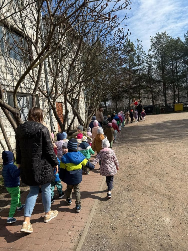 Radość z przyjścia wiosny Przedszkolaki wyraziły śpiewając piosenki o wiośnie i bawiąc się w pełnym słońcu na placu zabaw.