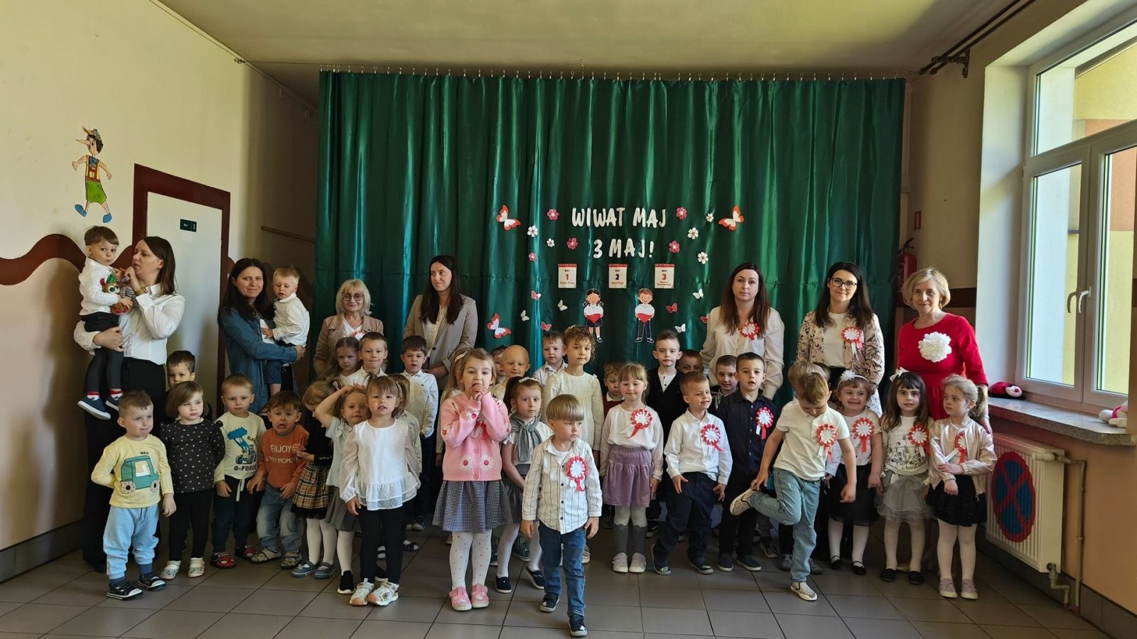 „Jesteśmy Polką i Polakiem, dziewczynką fajną i chłopakiem” to słowa z refrenu patriotycznej piosenki dla dzieci, które przyświecały naszym przedszkolakom w przygotowaniach do dzisiejszych obchodów narodowych świąt majowych. Od początku tygodnia przedszkolaki poznawały symbole narodowe, wykonały piękne prace plastyczne na wystawki dla rodziców oraz uczyły się wierszyków i piosenek nawiązujących do Dnia Flagi, Konstytucji 3 Maja, także Dnia Pracy.