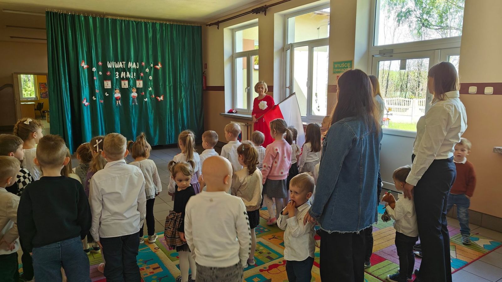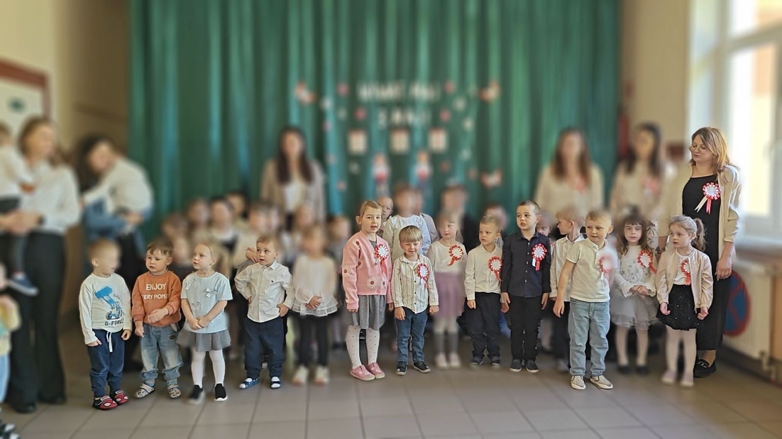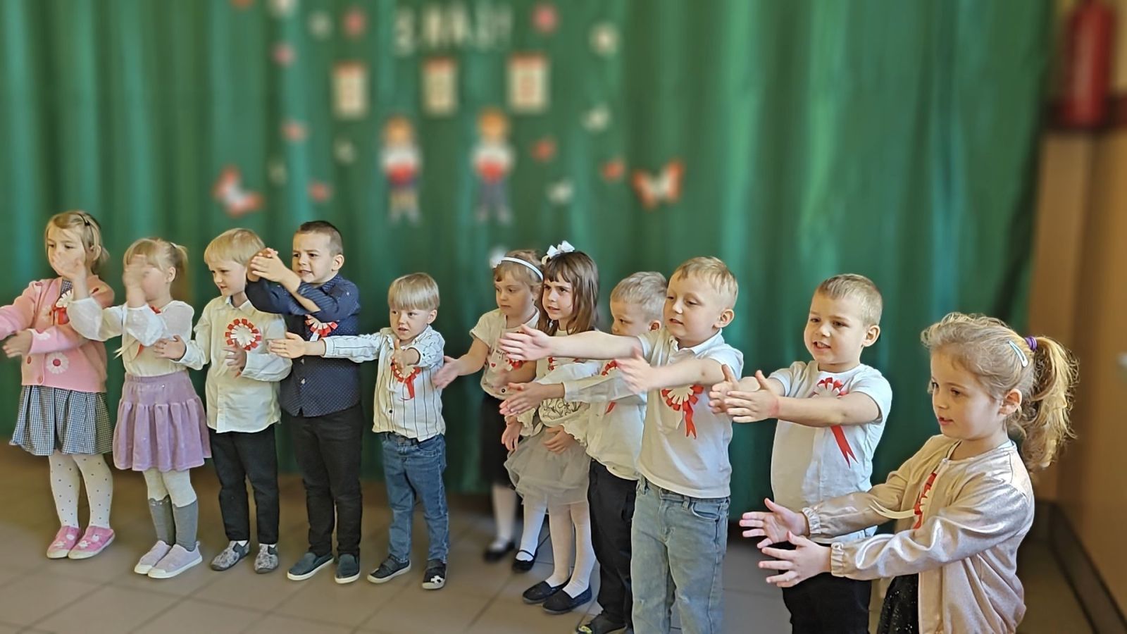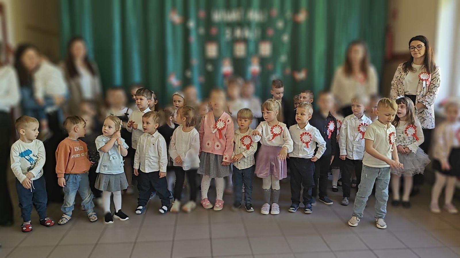 W tak ważnym dniu, dzieci w galowych strojach ozdobionych kokardami narodowymi zaprezentowały piękny występ artystyczny. Wydarzeniu wyjątkowej rangi nadała Pani Dyrektor, która przeprowadziła mini quiz z wiedzy o symbolach narodowych i zainicjowała odśpiewanie hymnu. Następnie, przedszkolaki w wierszach wyraziły swą miłość do ojczyzny i udowodniły, że zasługują na miano Małych Patriotów. Śpiewem podziwiały Polskę za jej waleczność, historię i piękno. Natomiast w piosenkach rozbudziły szacunek i umiłowanie ojczystego kraju.