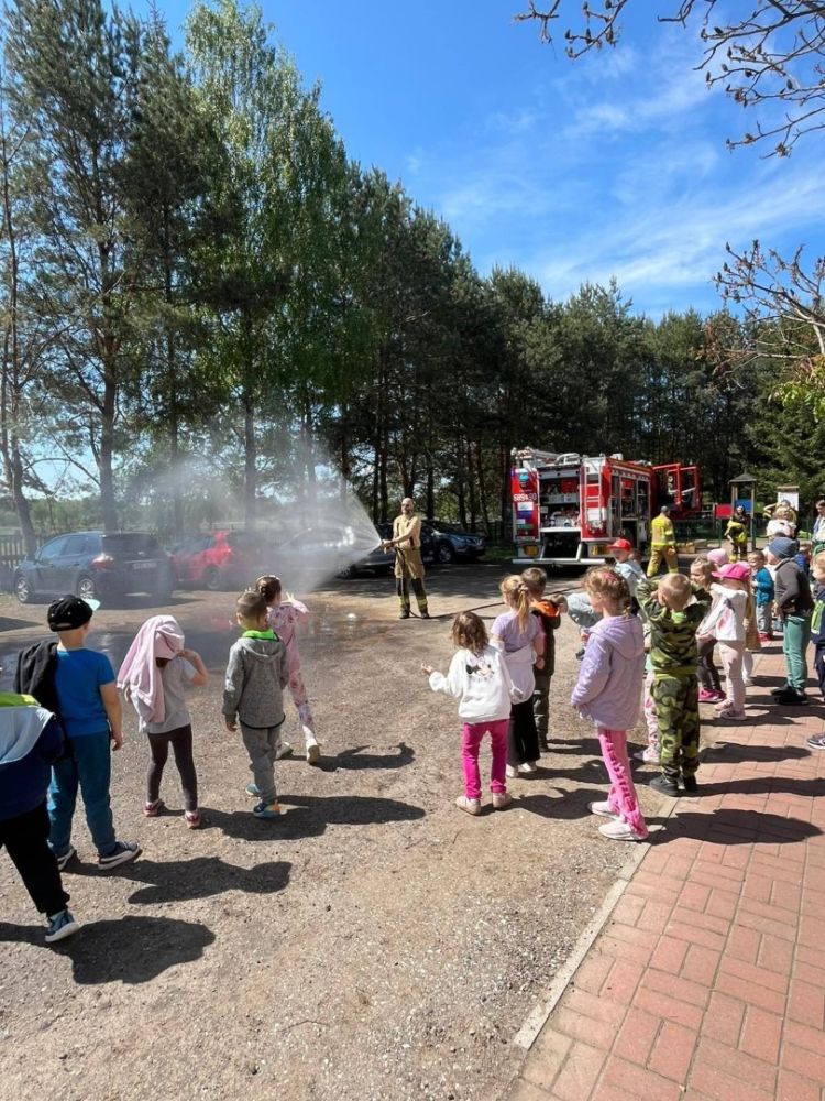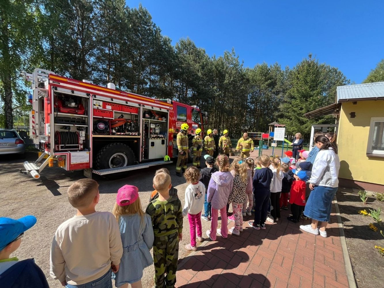 Dzieci miały niepowtarzalną okazję zobaczyć z bliska prawdziwy wóz strażacki i wejść do środka, przymierzyć strażacki hełm, a nawet… potrzymać wąż strażacki i zobaczyć jego działanie w praktyce!