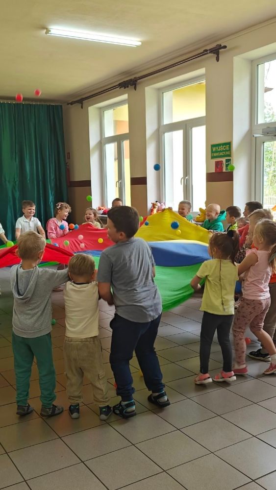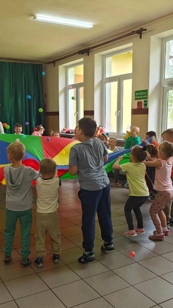 Zabawy ruchowe oraz integracyjne przyniosły dzieciom wiele uciechy, szczególnie