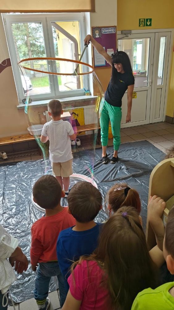W drugim dniu czekały na dzieci niespodzianki, które przygotowała Mama Naszych Przedszkolaków, animatorka zabaw „Maskotki Viki”. A co to oznaczało? Oczywiście fajną zabawę z bajkową postacią i różnorodnymi animacjami. Wesoły Stich towarzyszył wszystkim atrakcjom przygotowanym dla dzieci: skakaniu w kolorowym dmuchanym zamku, zamykaniu się w bańce mydlanej i zabawom z chustą animacyjną. Było przyklejanie brokatowych tatuaży, tworzenie balonowych figurek. które dzieci zabierały do domu.
